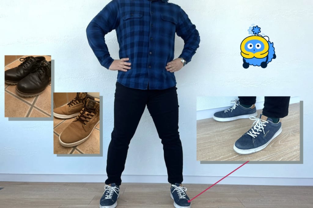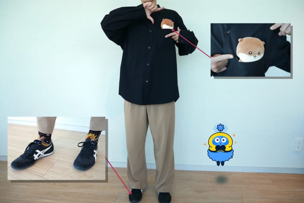 スニーカーはABCマートのオリジナルブランドがお気に入りで、色違いで3足持っているそうです!(上記写真)