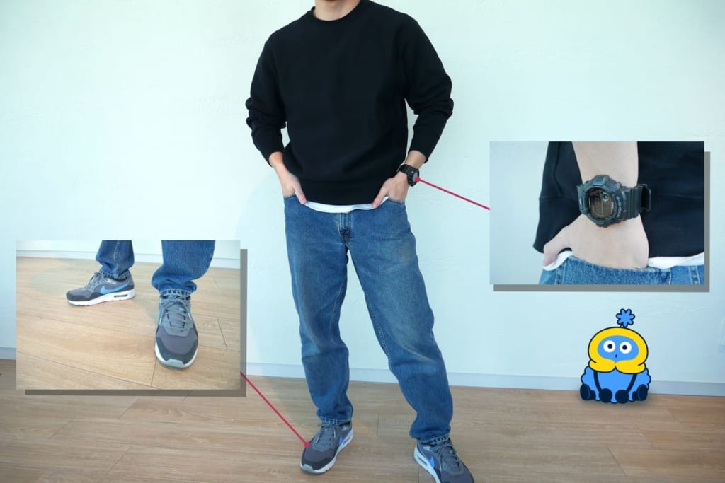 パンツもデニムが多く、スニーカーはナイキの エアーマックス、こちらのStyleが定着してます。社内の男性陣もこのStyleで出社している方が多い印象です!