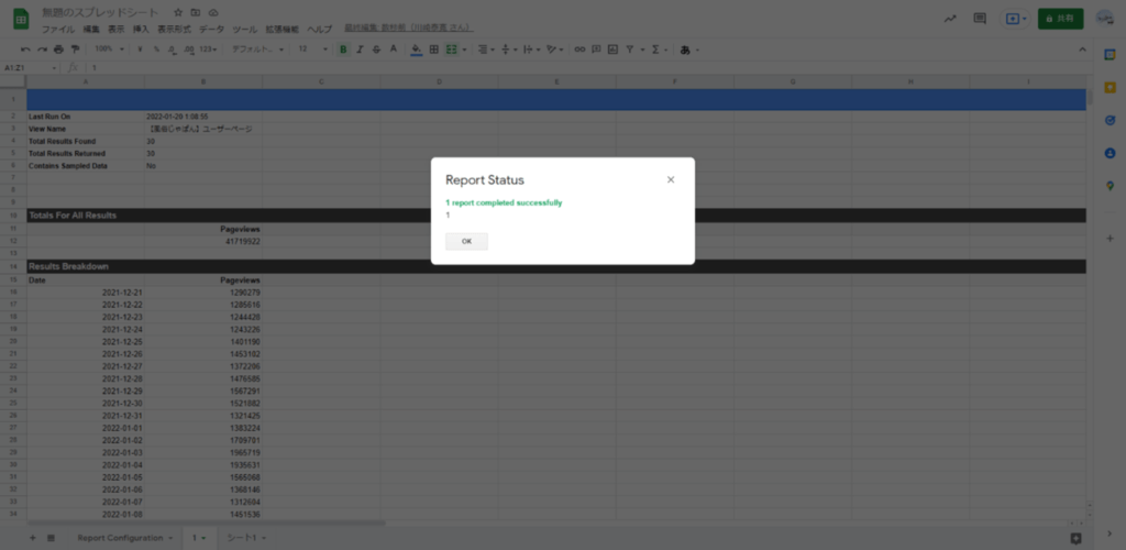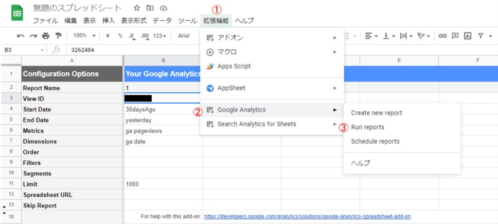 GoogleAnalyticsアドオンでデータを一括抽出!