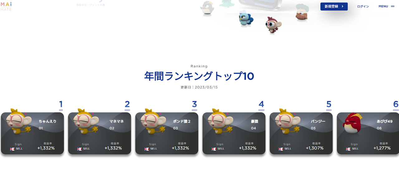 自分でエージェントを作るだけではなく、他のユーザーが作成した成績の良いエージェントを選ぶ(実際はそのキャラの設定をコピーする感じ)こともできます。