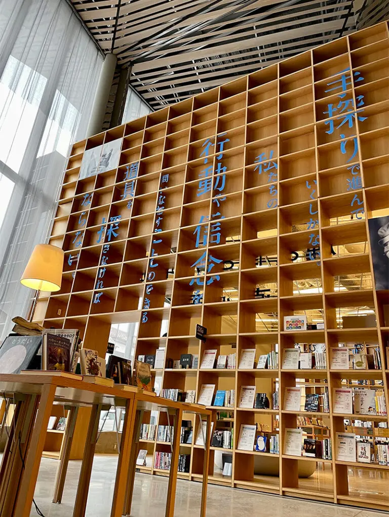 みるるの場合は「場所の世界観」に沿った本が配置されている、というのは上記の通りです。「森のポケット」には設計の伊藤さんのいう「言葉の彫刻」が書架の上部に配置され、その印象的なフレーズが空間の世界観をある種の鮮烈さをもって訴求してきます。