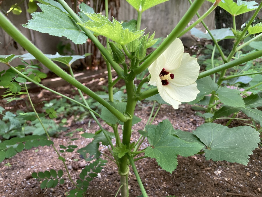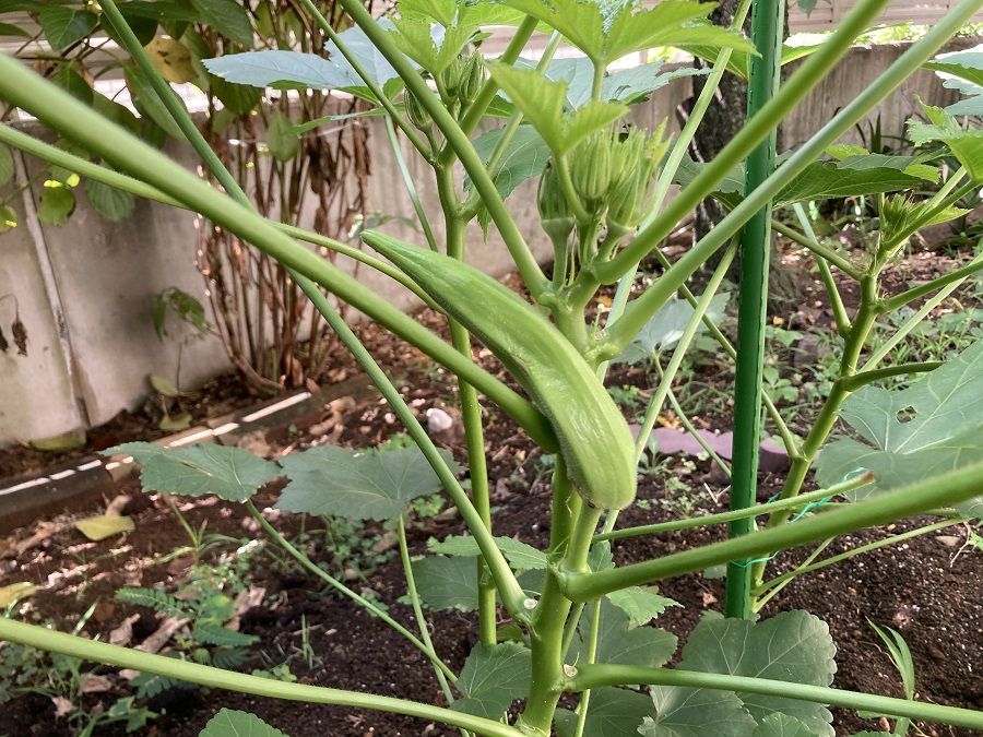 オクラ、実りました! 娘と一緒に収穫を楽しみ、味もしっかりとオクラでした。